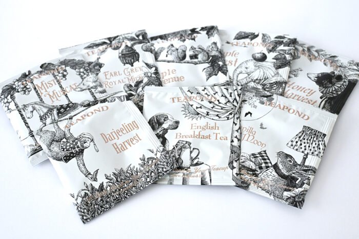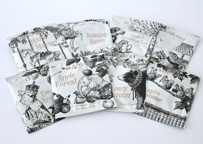 TEAPONDで販売される干支をモチーフにした紅茶缶とティーバッグセレクション「ハーベストセレクション」のパッケージのためのイラストレーション。