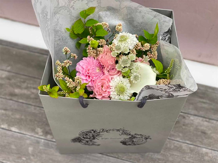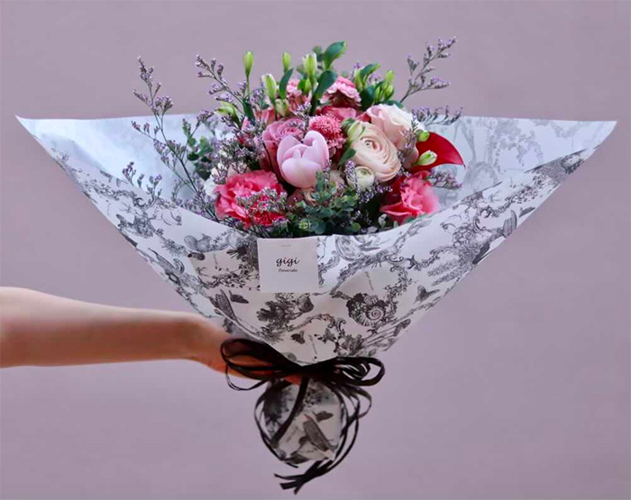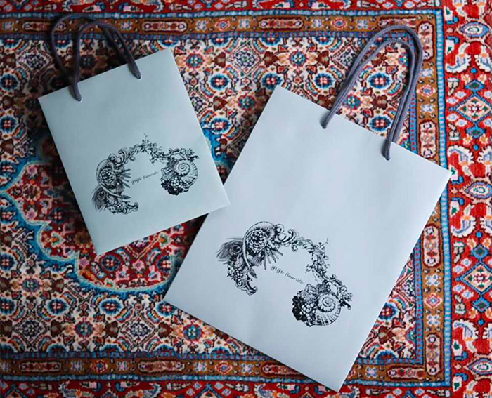 gigi fleuristeのロゴイラスト、ブーケのラッピングペーパー