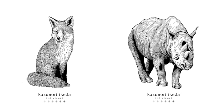 これまでkazunori ikeda individuelとの仕事の中でたくさんの動物を描いてきました。