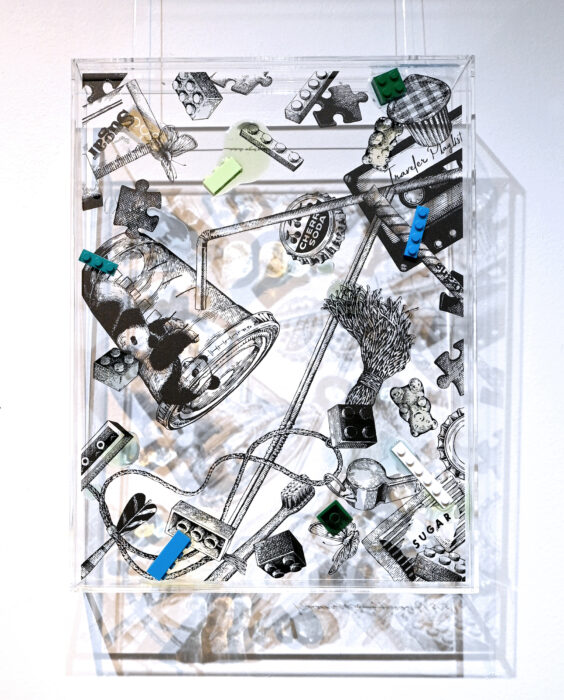 今回私が取り組んだアクリルをキャンバスとした作品は、UV印刷とアクリル絵の具やスプレーなどの直接の描画を組み合わせたものです。